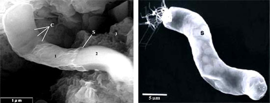 So here’s the deal on what Dr. Hoover found. He sterilized, and then cut open a bunch of carbonaceous chondrite meteorites, which are meteorites that tend to contain lots of water and organic material like amino acids. Hoover then examined the freshly exposed insides of the meteorites with an electron microscope, and inside he found lots (lots) of what he says seem to be ‘indigenous fossils’ of bacteria. Many of the fossils were embedded directly in the rock, and the lack of nitrogen in them makes it unlikely they they came from Earth, according to Hoover. So in this case, ‘indigenous’ means that the bacteria may have arrived on Earth along with the meteorite: natively, they’d be aliens. ALIENS!