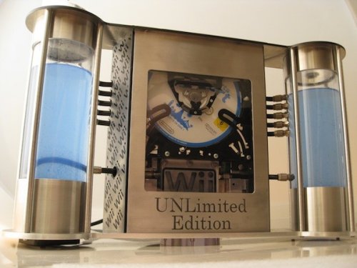 This is a hell of a mod, plus it’s not just for looks as those are functional liquid cooling tubes. Sure the Wii will probably never need that level of cooling since its the weakest of all the main consoles, but that doesn’t mean we cant praise a mod thats practical as well as visually stunning. This mod took just about a year and a half for modder Angel OD (odd name choice parents) of the Bit-tec network. I think he should have Resident Evil loaded in at all times, thing looks like a T-virus tube. So is this not the coolest friggin Wii mod you have ever seen?